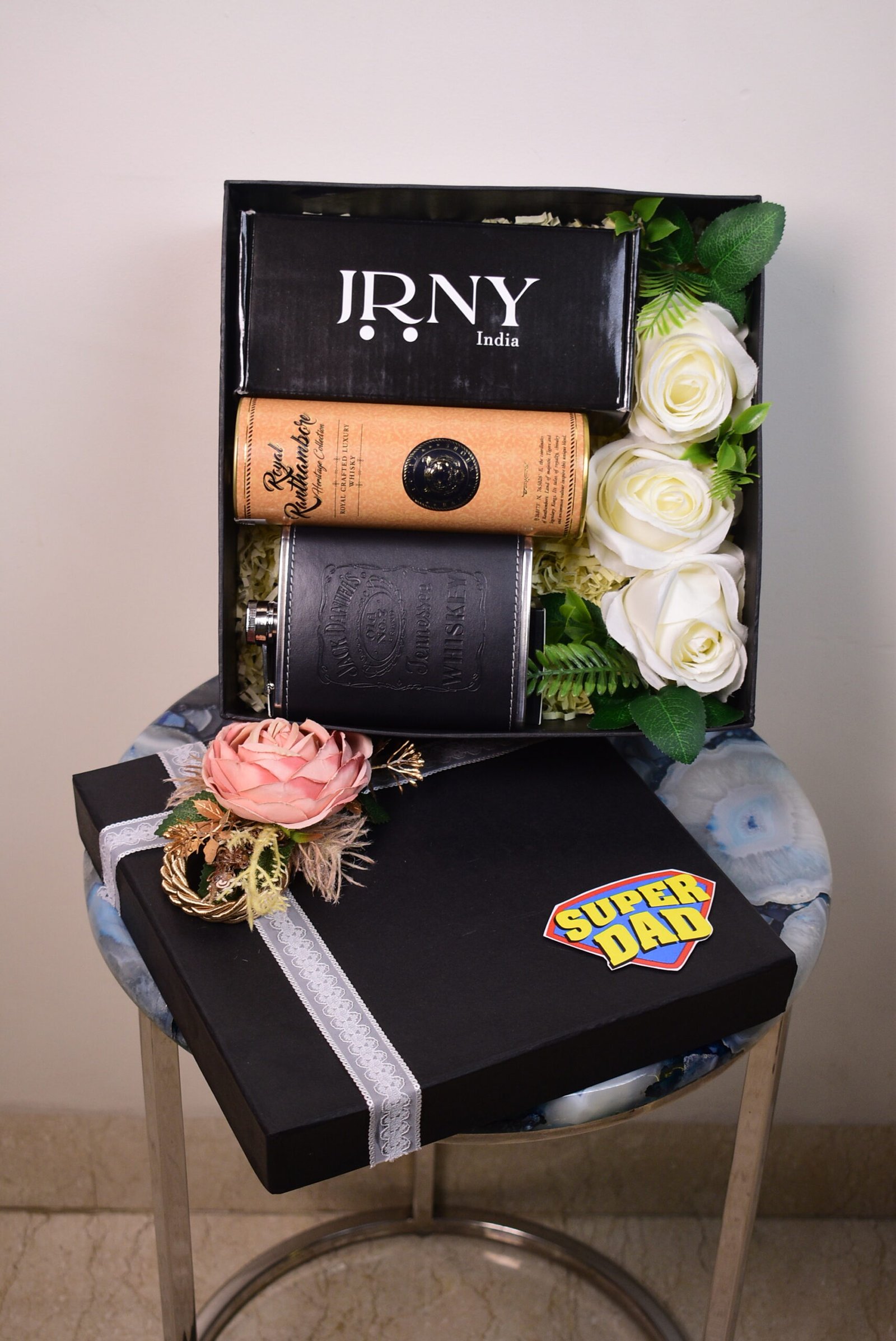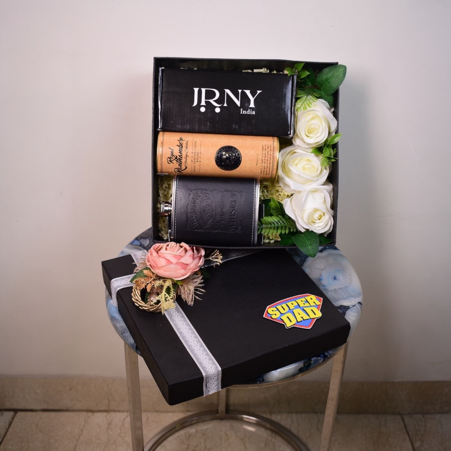 Celebrate special moments with this thoughtfully curated gift hamper, featuring a pair of JRNY India’s trendy sunglasses, a bottle of Royal Beverage and Royal Flask. Perfect for any joyous occasion.