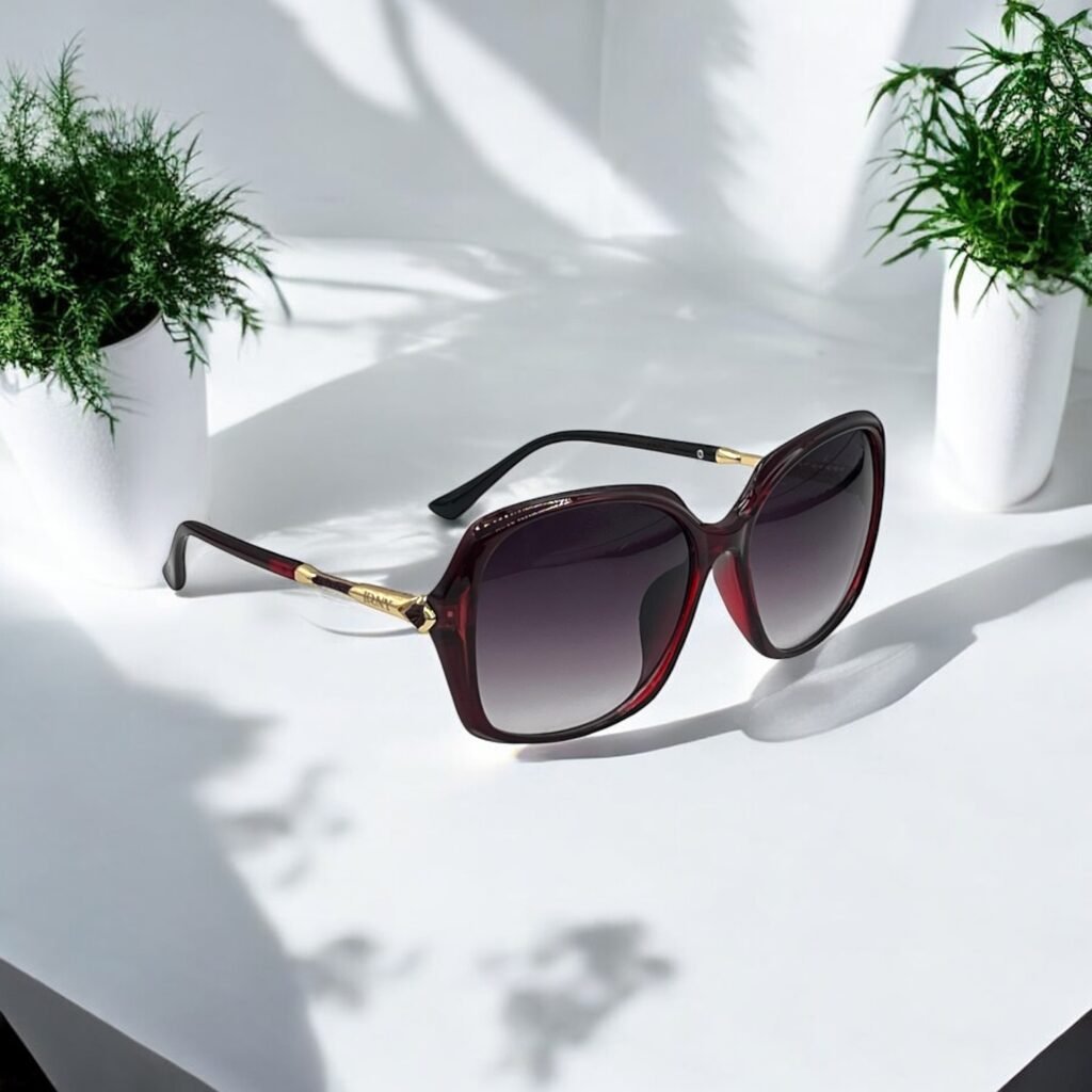 Frame Material: Plastic Lens Colour: Black Frame Colour: Red Frame Shape: Square Gender: F UV Protection: Yes